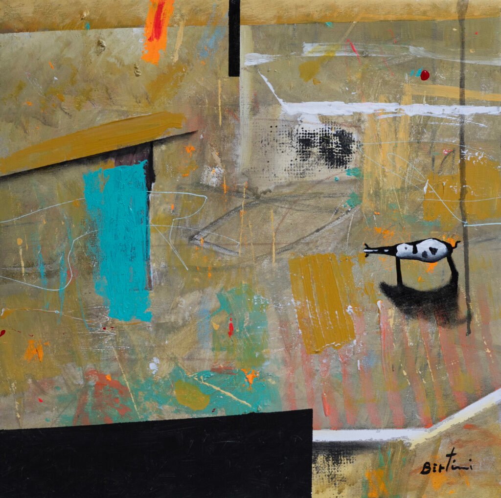 Bertini, artista del catálogo permanente de nuestra galería, explora las infinitas posibilidades del color, extendiendo en la tela la idea de los grandes espacios, irrumpidos por pequeños detalles que emergen a modo de puntos de referencia.