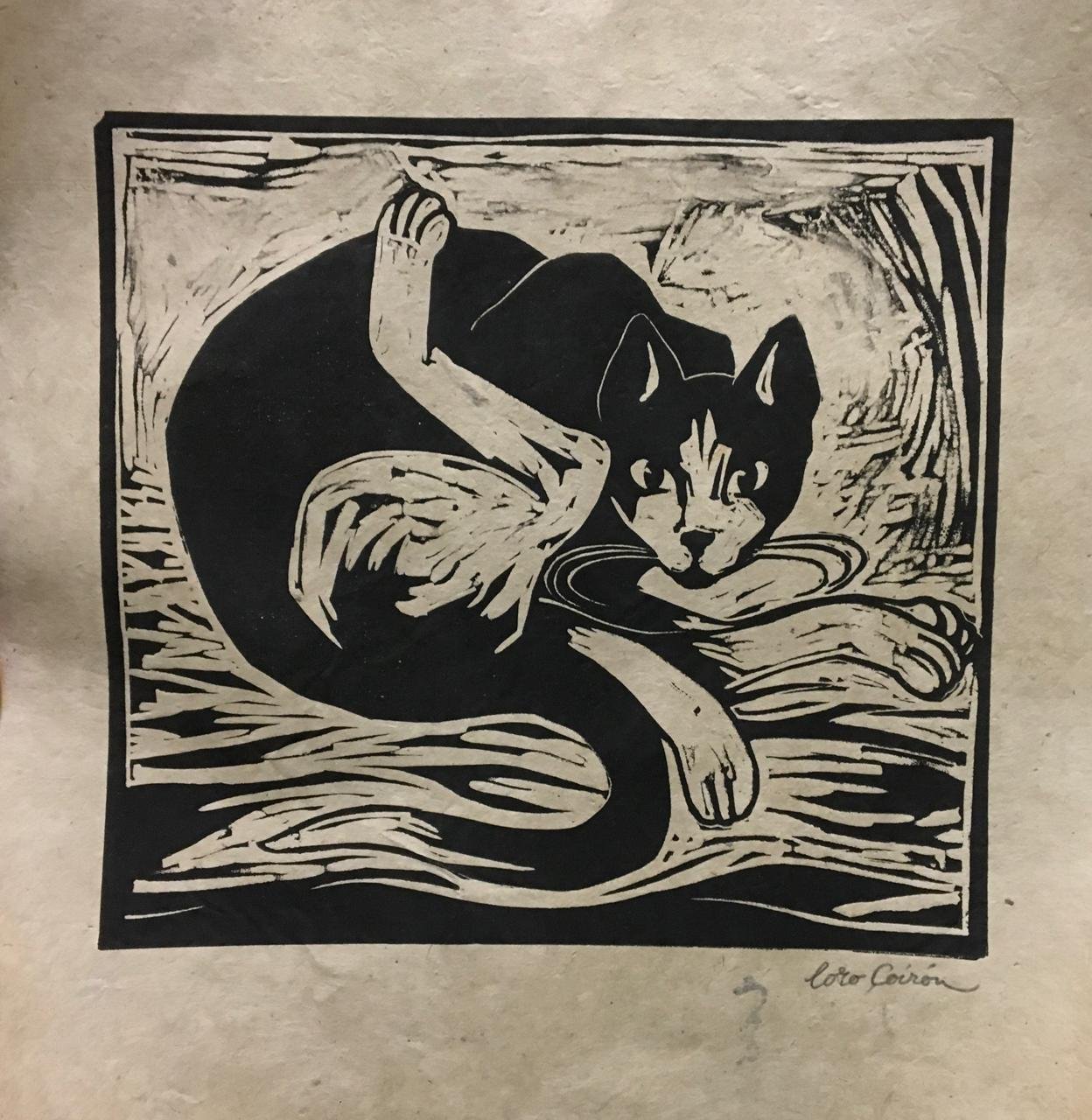 “Cavilación felina” c/a, Xilografía, 40 x 45 cm
