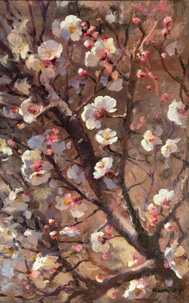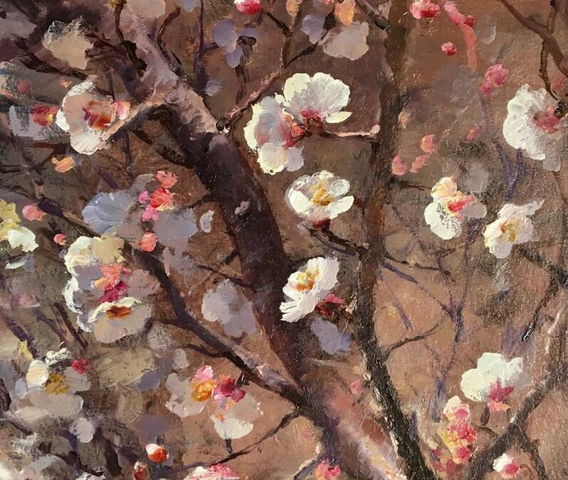 “Flores de damasco” óleo sobre cartón 30 x 20 cm (2024)