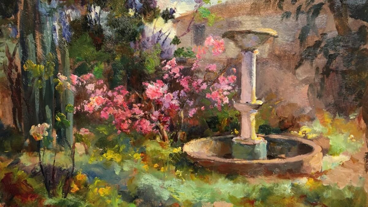 “Patio en primavera” óleo sobre cartón 28 x 39 cm (2020)