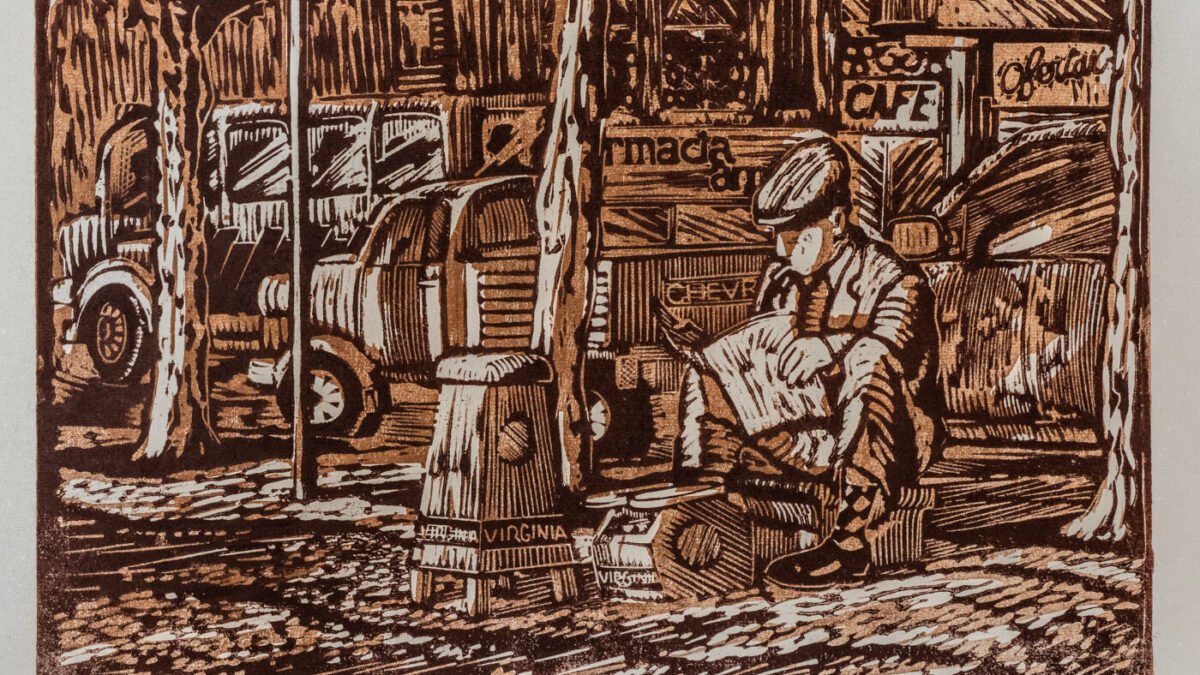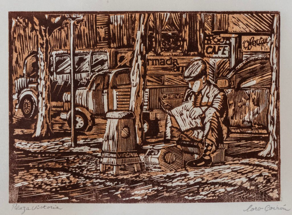 “Plaza Victoria” Linograbado a color 46 x 68 cm