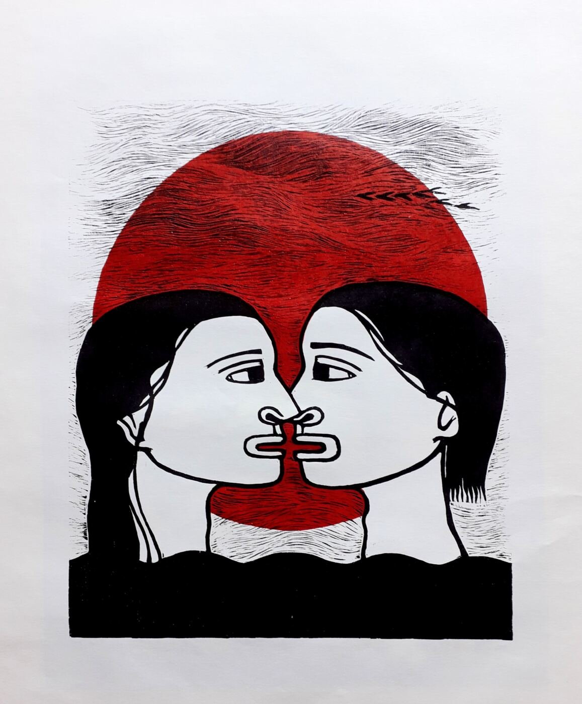 “Amantes en primavera” Xilografía color 55 x 45 cm