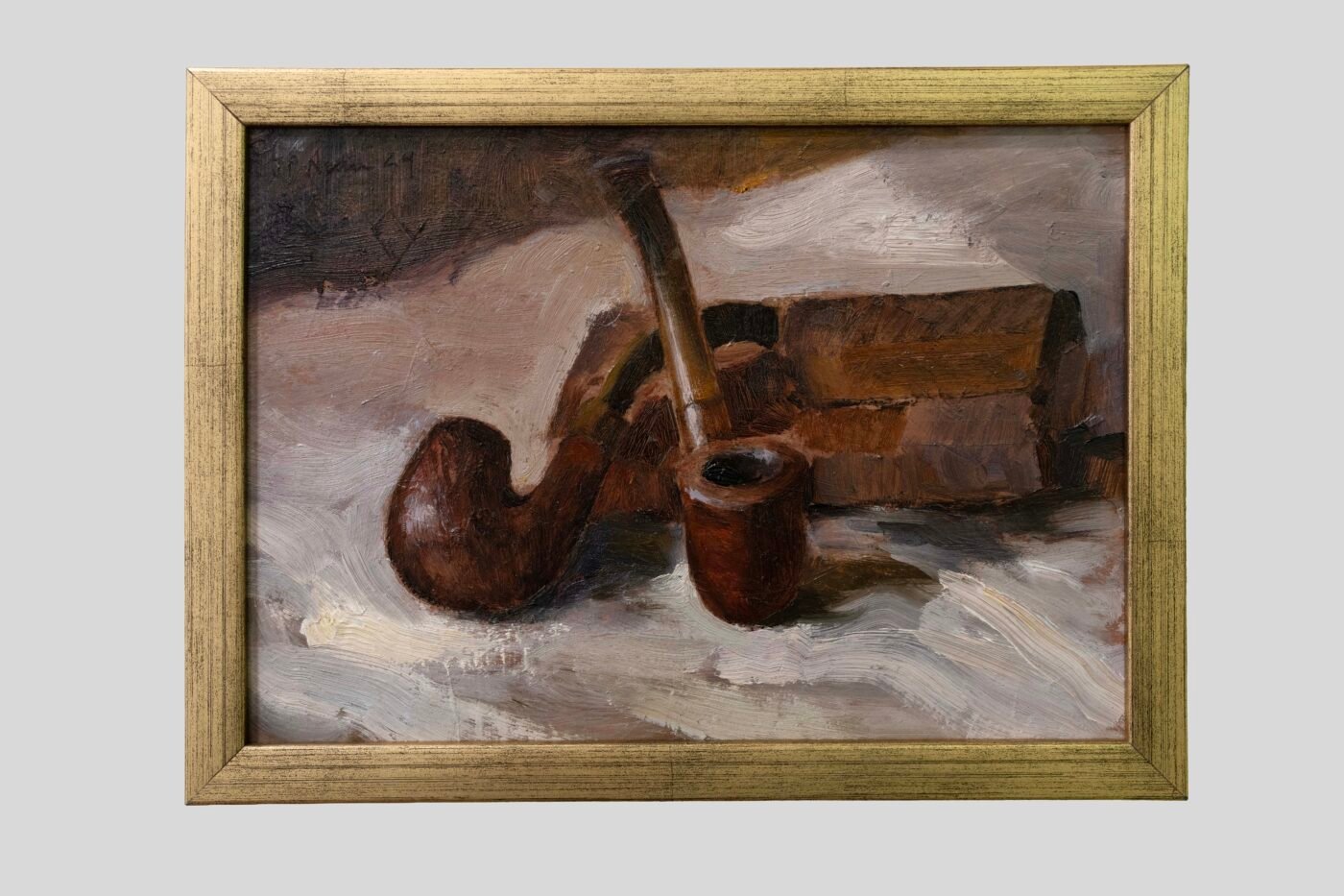 “Pipas en el taller” óleo sobre cartón 17 x 24 cm (2023)